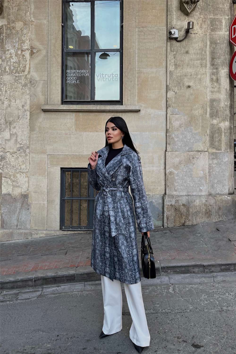 كوت طويل باللون الرصاصي ذو نقشة مميزة