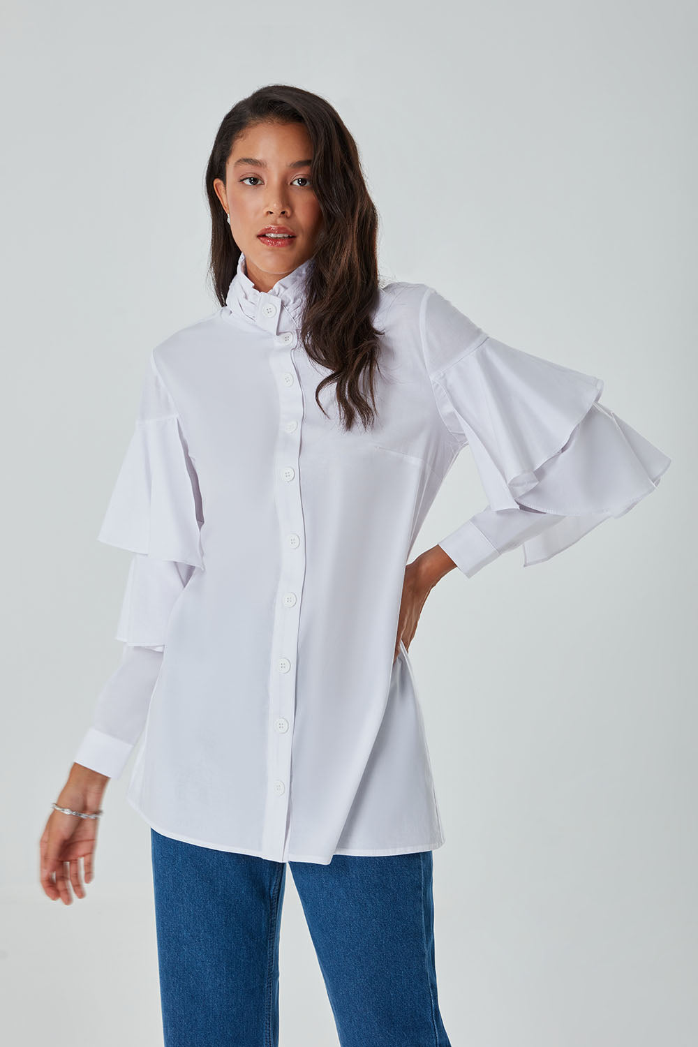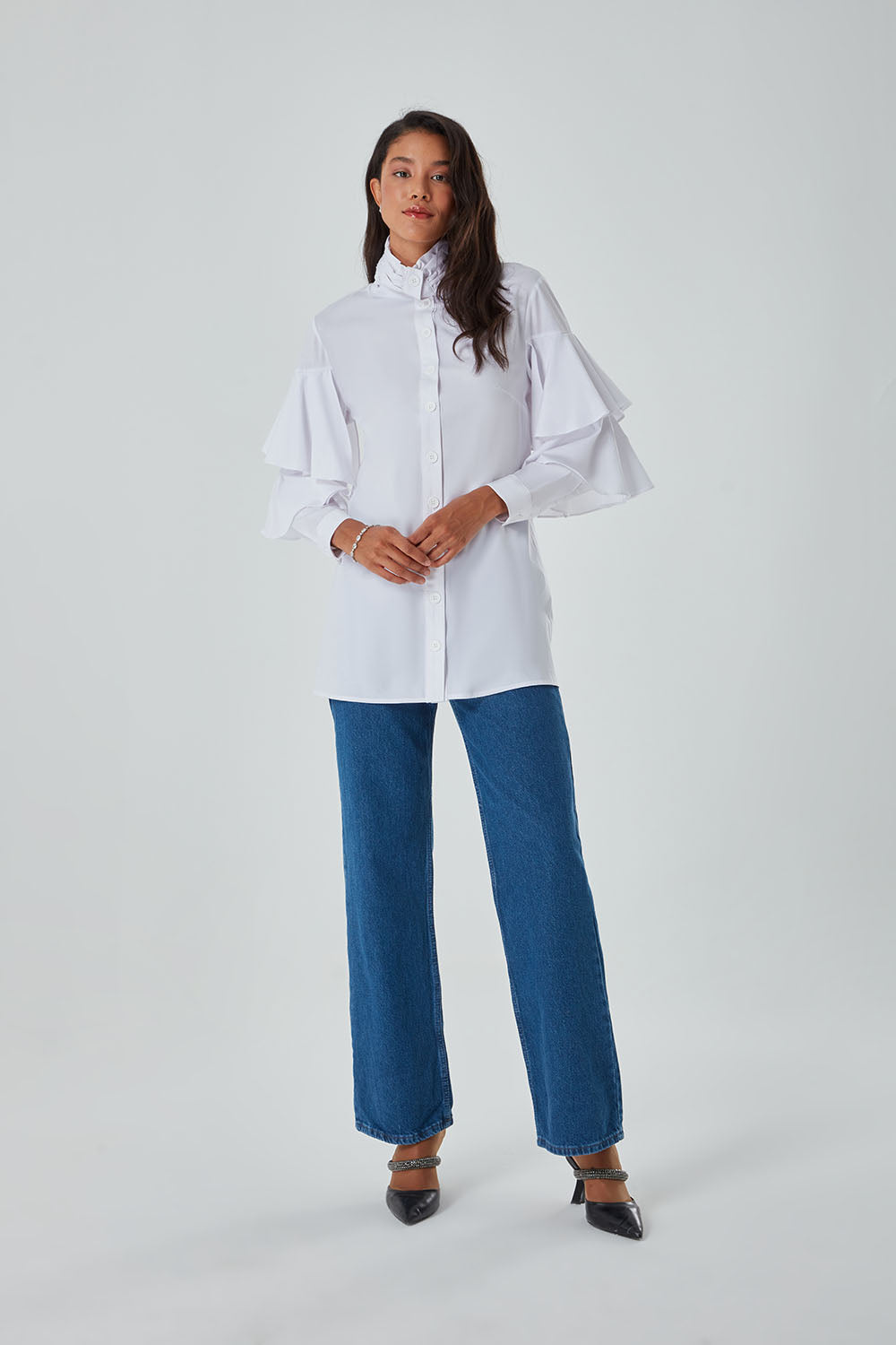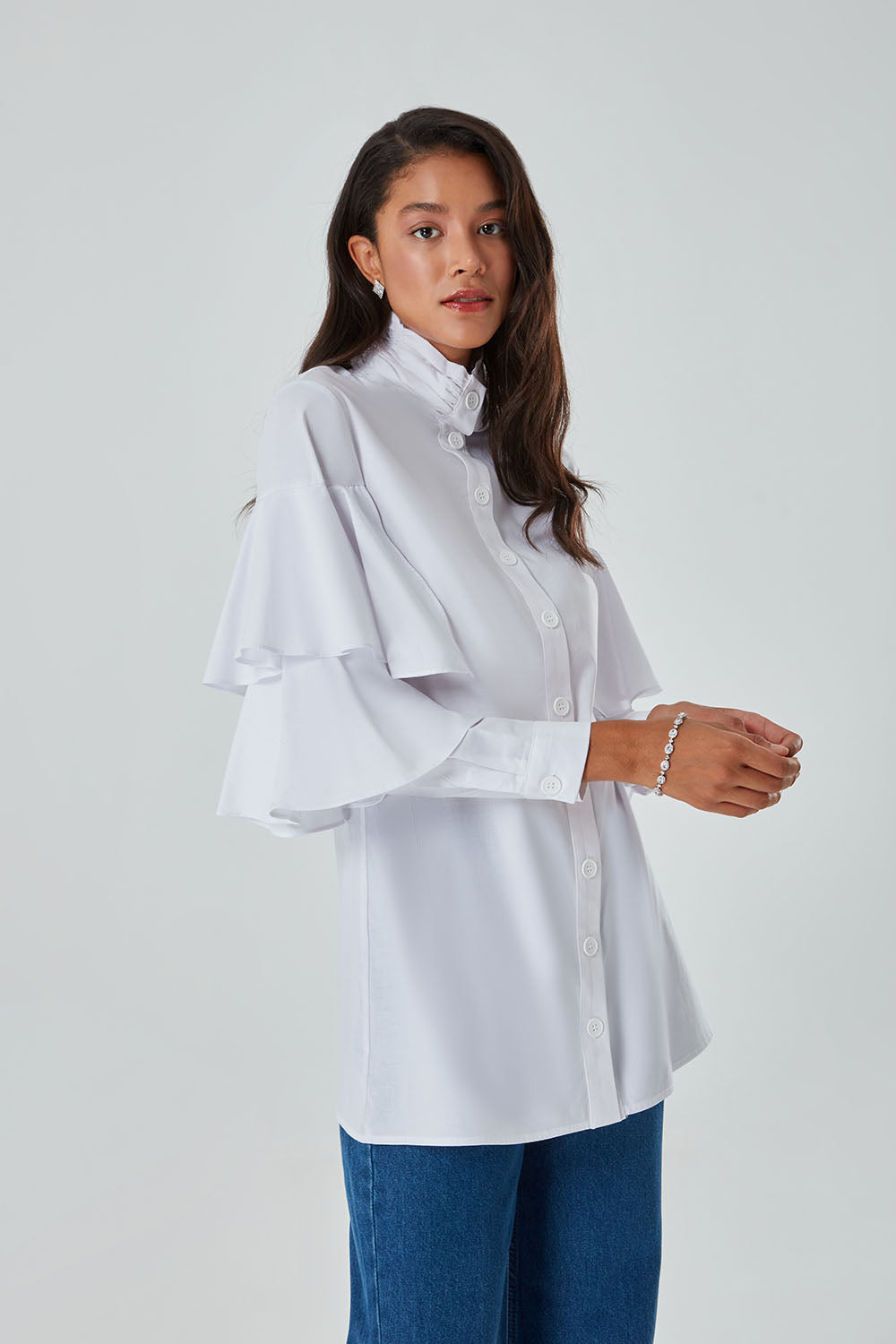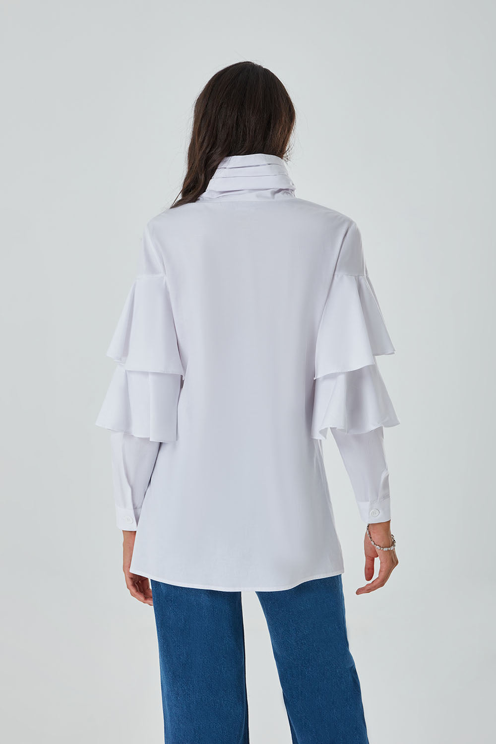 قميص أبيض فاخر مصنوع من 100% بوليستر، يتميز بأكمام فريدة تضيف لمسة من الأناقة والتميز. يتمتع القميص بخفة الوزن ومتانة عالية، مع قدرة ممتازة على مقاومة التجاعيد وتجفيف سريع، مما يجعله خيارًا مثالياً للمناسبات الرسمية وغير الرسمية على حد سواء.