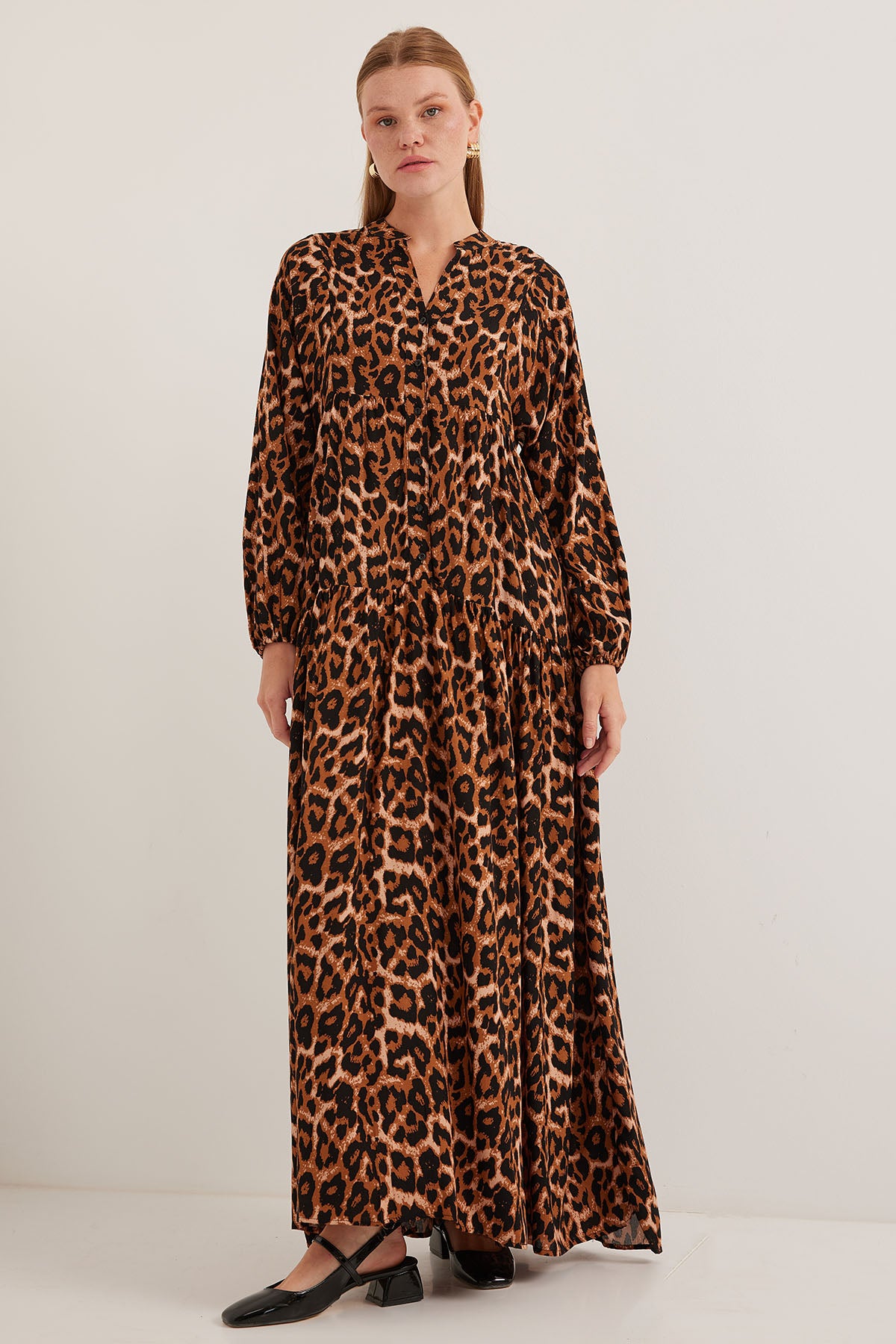 فستان طويل باللون البني البنيجات مصنوع من 100% فيسكوز عالي الجودة، يتميز بنعومة الملمس وتهويته الممتازة لتوفير راحة مثالية طوال اليوم. تصميمه الأنيق يناسب مختلف المناسبات ويمنح مظهراً راقياً وعملياً يسهل تنسيقه مع الحجاب. اختيار مثالي للباحثات عن أزياء تجمع بين الراحة والأناقة بلمسة كلاسيكية مميزة.