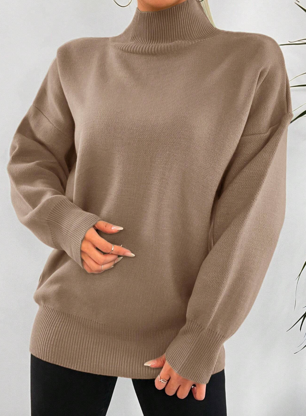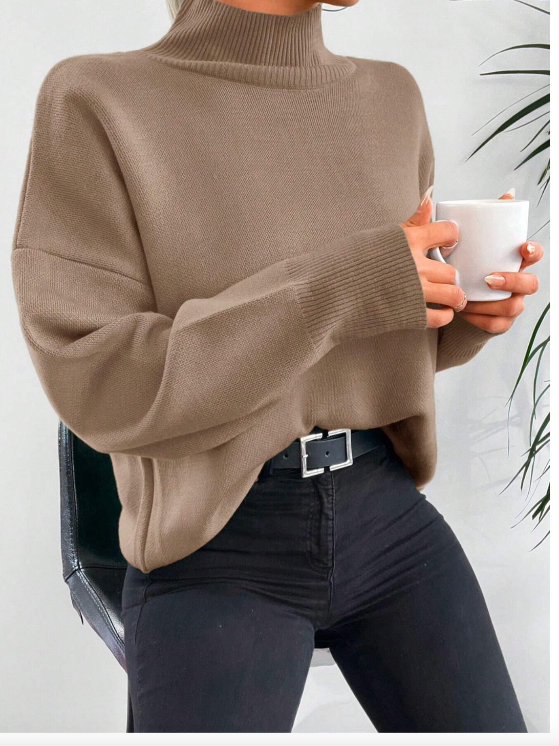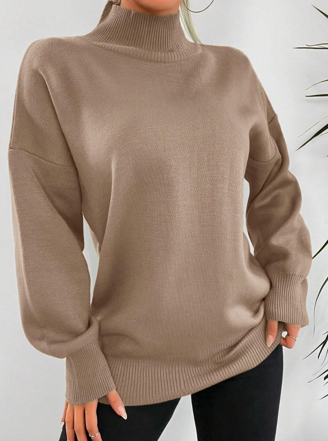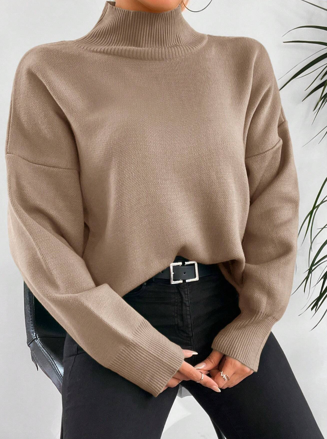 بلوزة صوف ناعم باللون البيج