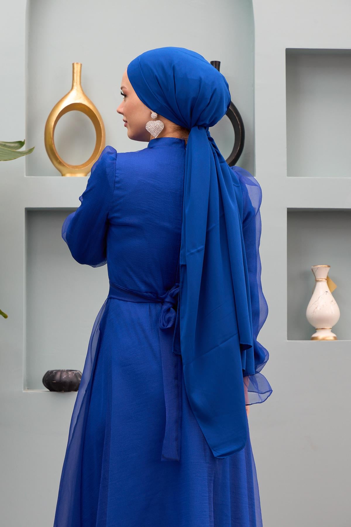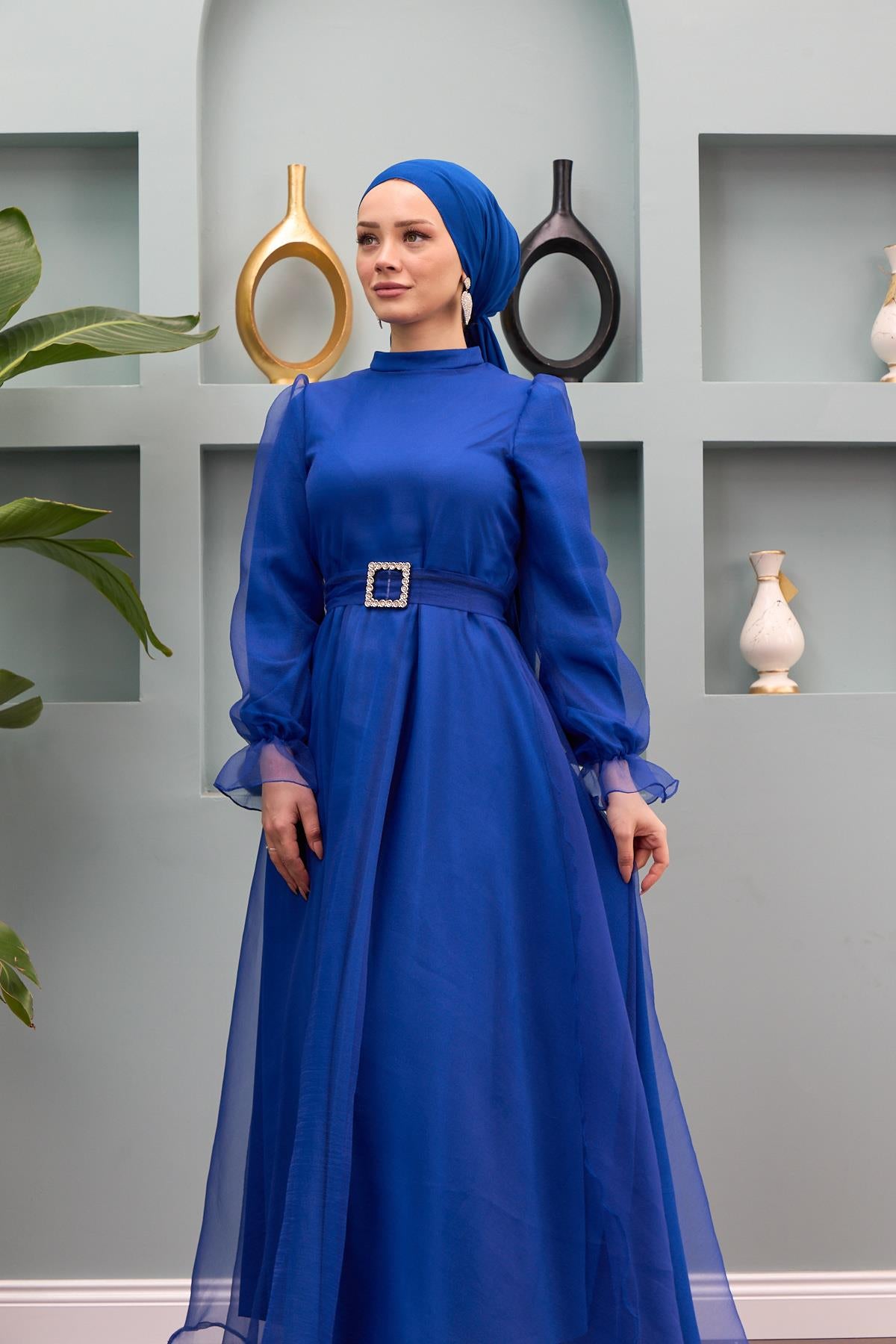 يتميز فستان سهرة بحزام حجري باللون الأزرق الساحر بتصميم أنيق من قماش الأورجانزا الناعم، مما يمنحه لمسة فاخرة وخفة في الحركة. يبرز الحزام الحجري خصرك بشكل مثالي ليضفي لمسة من التألق والرقي تناسب المناسبات الخاصة والحفلات المسائية. صُنع بدقة عالية ليجمع بين الأناقة والراحة، مما يجعله خيارًا مثاليًا لإطلالة متجددة وفريدة.