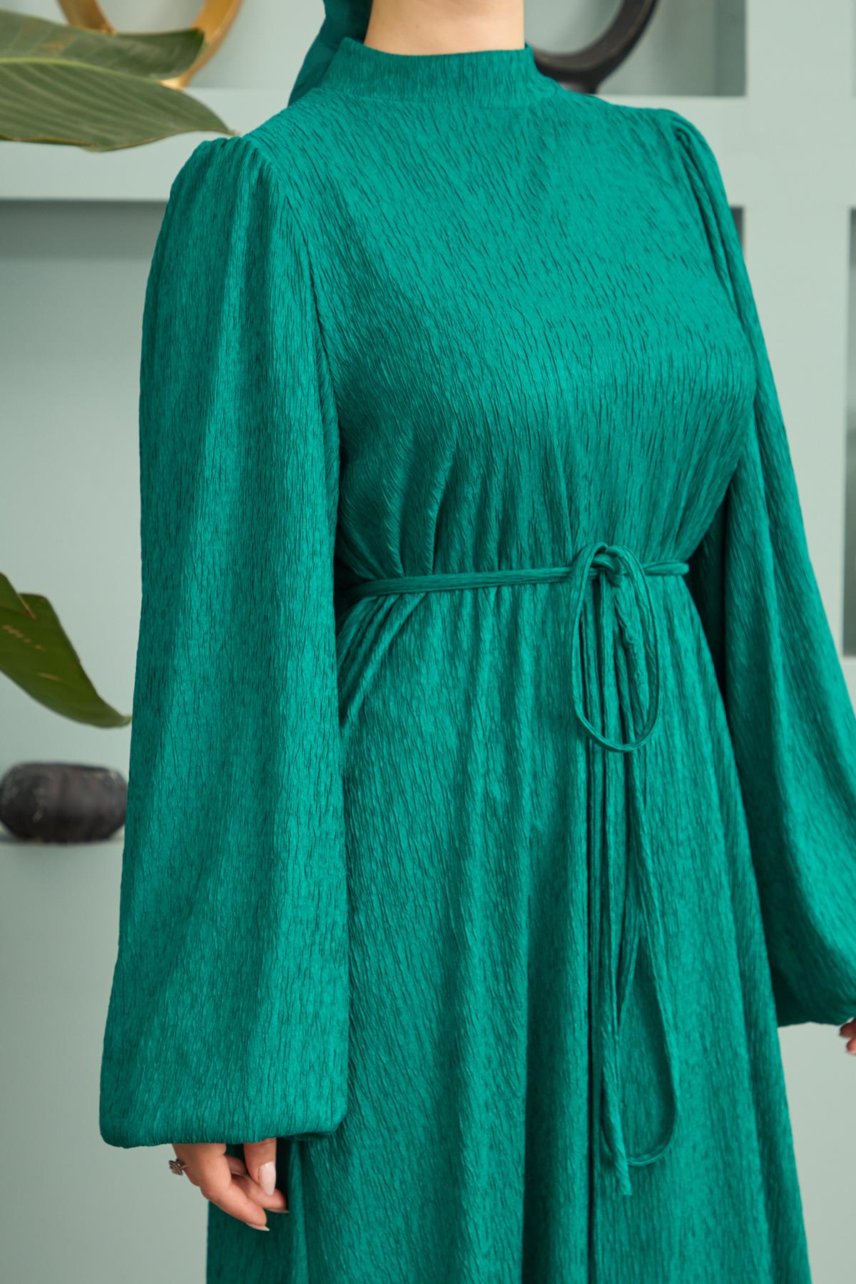 فستان طويل باللون الأخضر البترولي، مصنوع من قماش بُرومجوك عالي الجودة، يتميز بحزام يحدد الخصر ليبرز الأناقة والأنوثة. تصميمه المريح يناسب مختلف المناسبات، مع خامة تمنحك إحساساً ناعماً ومظهراً أنيقاً طوال اليوم. خيار مثالي لمن تبحث عن مزيج من الراحة والأناقة العملية.