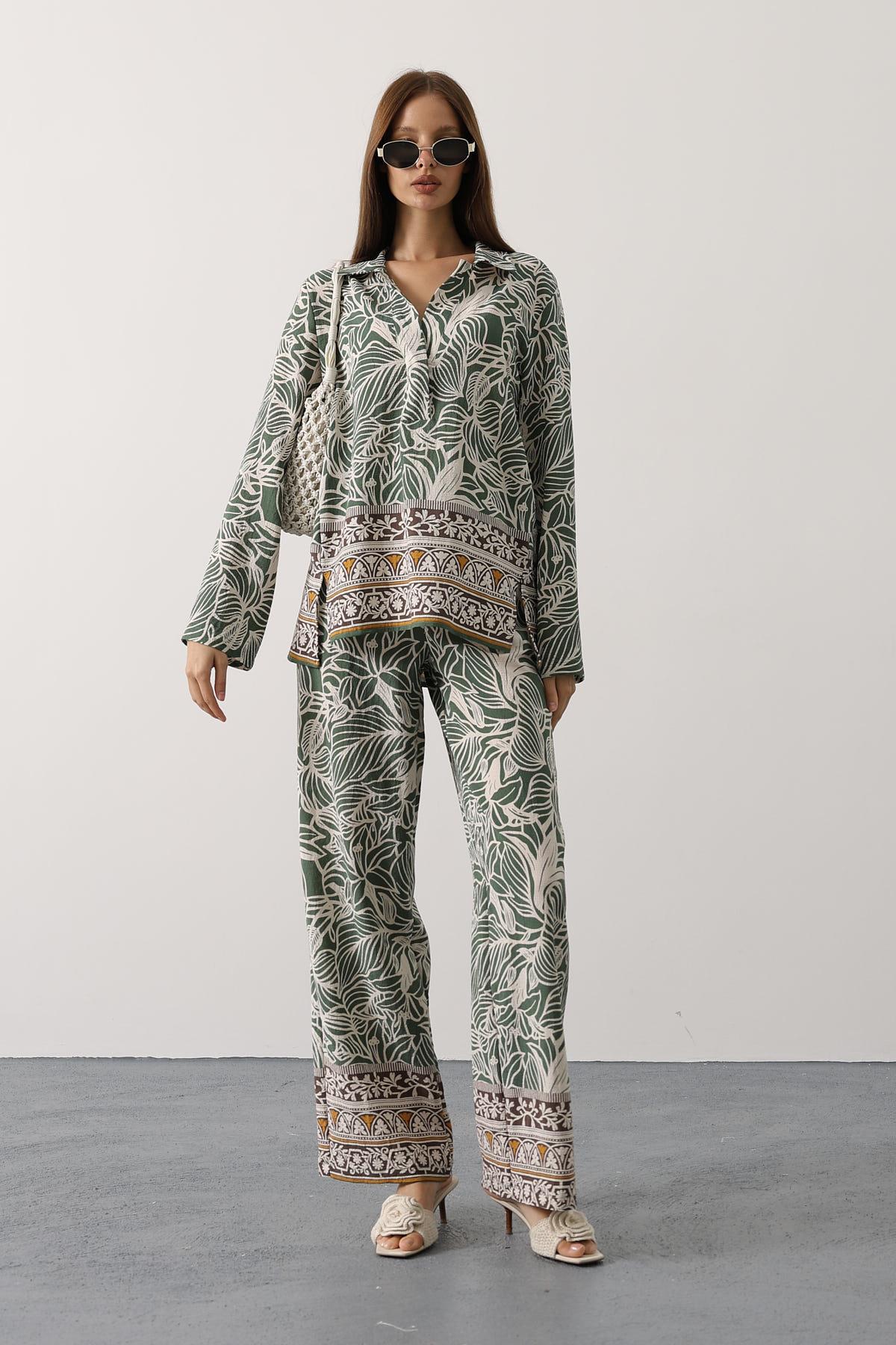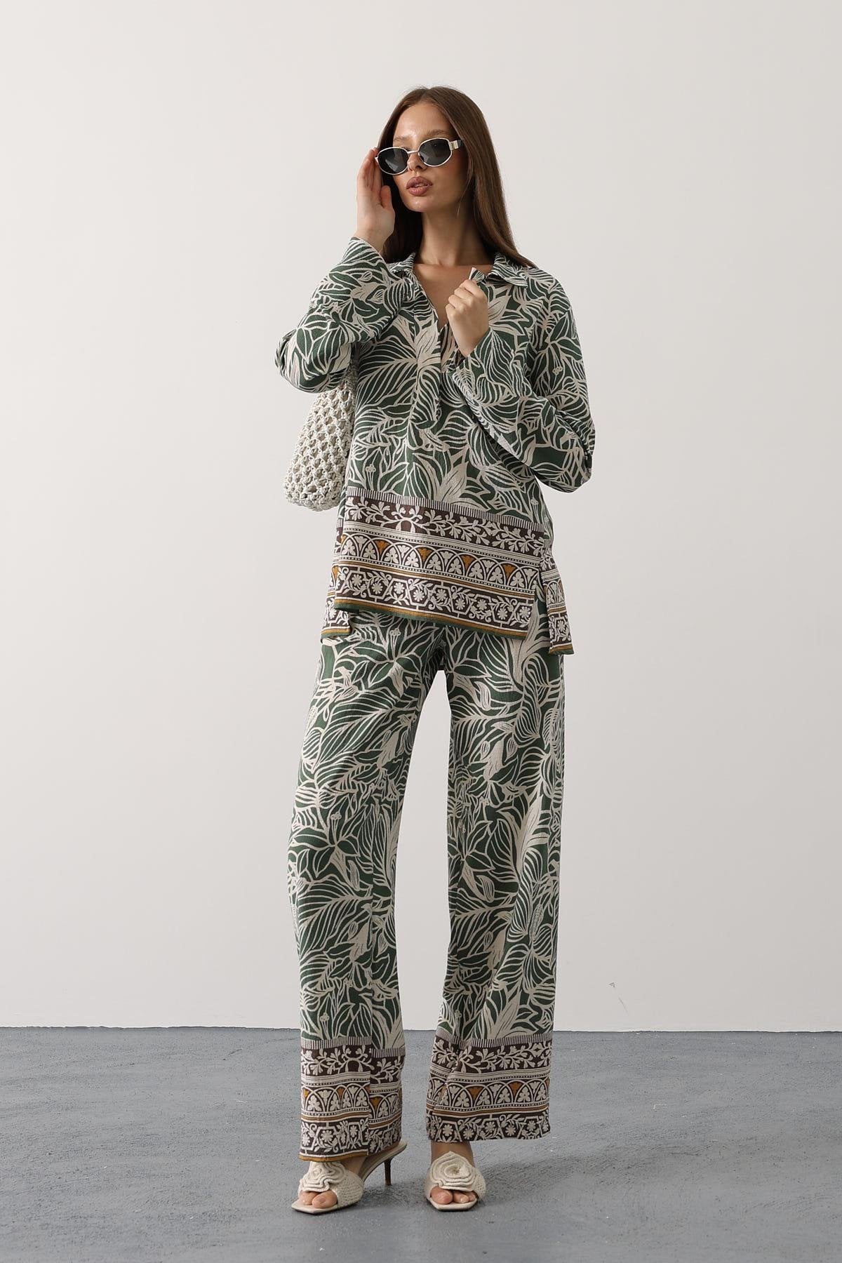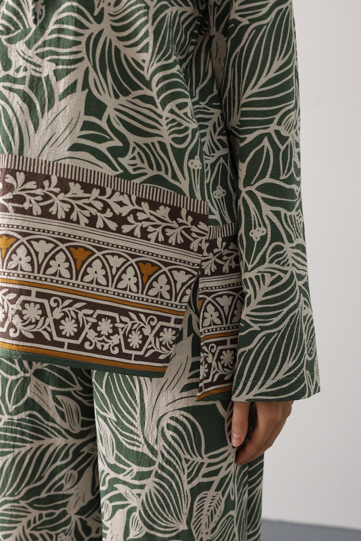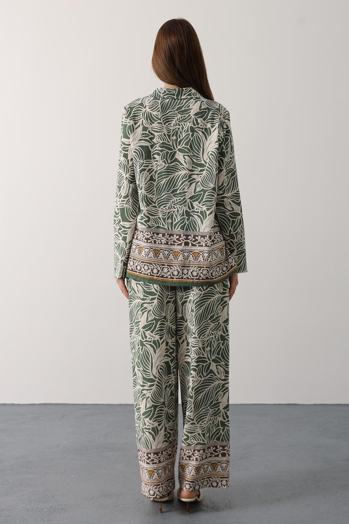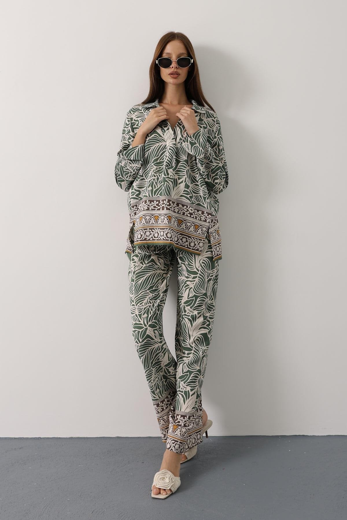 يتميز هذا السوت الأخضر بنقشة مميزة وتصميمه الأنيق الذي يجمع بين الراحة والأناقة. مصنوع من مزيج عالي الجودة من 85% فيسكوز و15% نايلون، مما يضمن ملمسًا ناعمًا ومرونة مثالية تناسب جميع الأوقات. يناسب هذا الطقم العصري المناسبات الرسمية وغير الرسمية، ويمنحك إطلالة متجددة ومميزة.