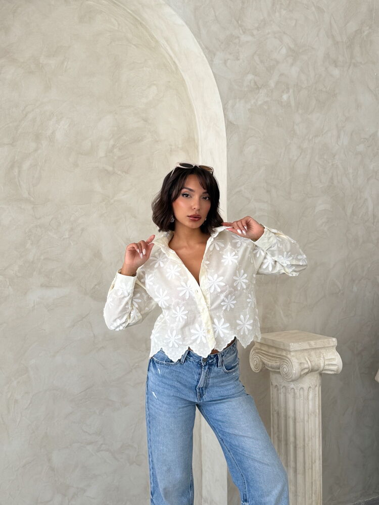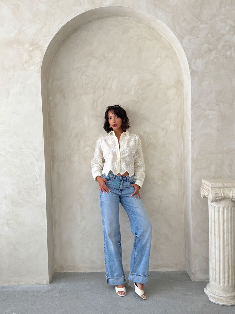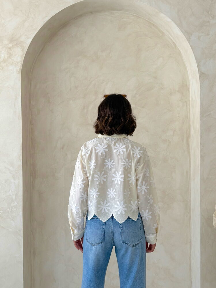 تجمع هذه القميص القصيرة البيضاء بنقشة الأزهار وياقة على شكل حرف V بين نعومة القطن ومتانة البوليستر، مما يوفر راحة عالية وعمرًا طويلًا للملابس. يضفي تصميم الياقة المفتوحة والطول القصير لمسة أنيقة ومتنوعة، مما يجعلها قطعة مثالية للارتداء بشكل منفرد أو كطبقة علوية أنيقة، خاصةً في الأجواء الدافئة أو الخروجات الكاجوال. تضيف نقشة الأزهار لمسة رقيقة من الأناقة لخزانتك اليومية.
