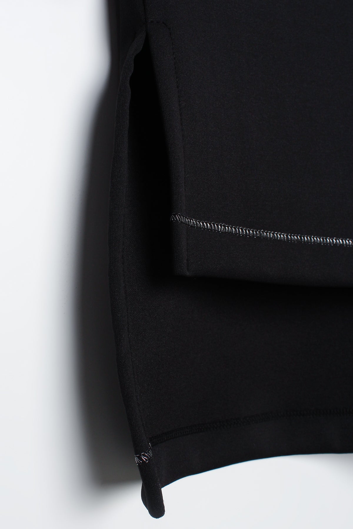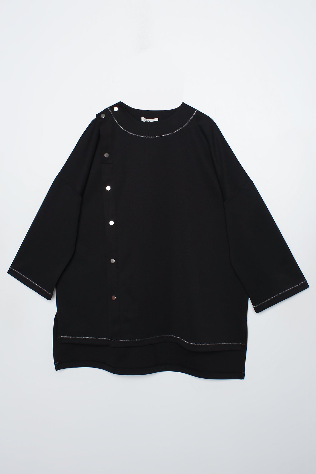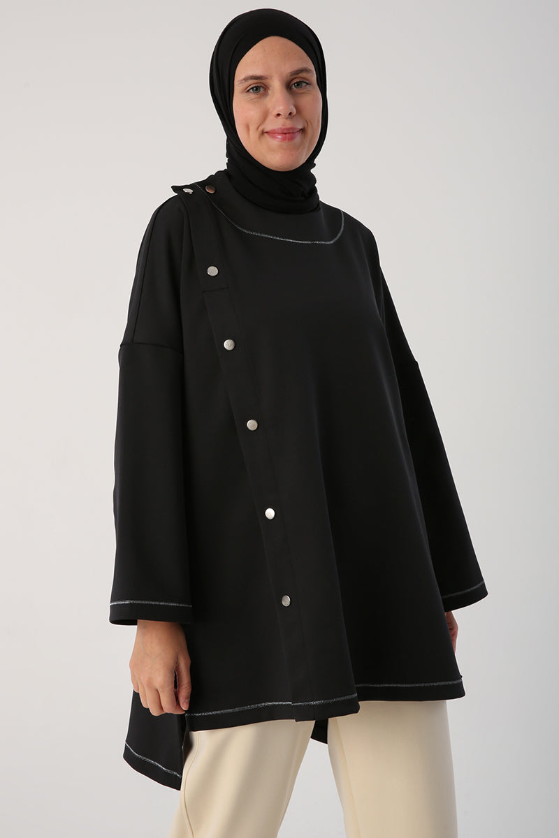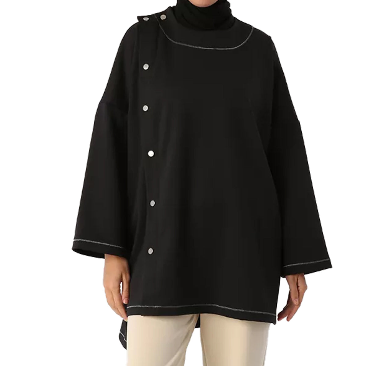 تتميز هذه التونيك السوداء ذات التصميم الواسع بياقة عالية تجمع بين الاحتشام والأسلوب المعاصر. يضمن القصّة الفضفاضة راحة وسهولة في الحركة، مما يجعلها مثالية للإطلالات الكاجوال والرسمية على حد سواء. صُنعت لتبرز قَصّة أنيقة، وتعتبر إضافة متعددة الاستخدامات لأي خزانة تبحث عن الأناقة مع لمسة من الرقي البسيط.